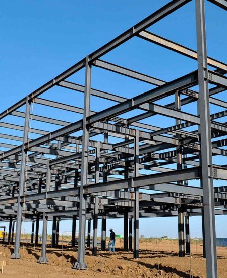 Steel frame structure is a construction system that uses a framework of steel columns and beams to support the building's weight and withstand external forces.